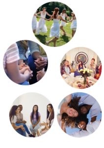 V naših ženskih krogih, svetih prostorih, se lahko svobodno izražate, rastete in se povezujete z drugimi ženskami. Naše skupine so zasnovane tako, da ponujajo varno okolje za deljenje izkušenj, razumevanje in vzajemno podporo.